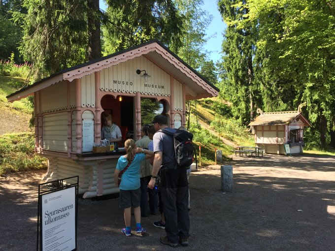 8. Seurasaari Open-Air Museum 门票9欧,凭卡免费。5-9月开放,冬天不开。这个地方特别好,展示了以前的生活劳动场所,小岛上的木屋、树林、松鼠都十分有趣。只在外面看小木屋是免费的,进小屋需要门票,有身着当地服饰的妹子站在木屋前的都是要凭票入场的。下图是买票处。