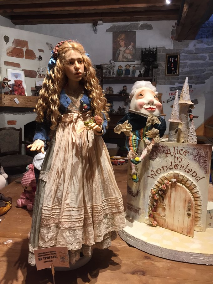这条街充满着古老的房屋和手工艺品,例如爱丽丝梦游仙境的人偶: