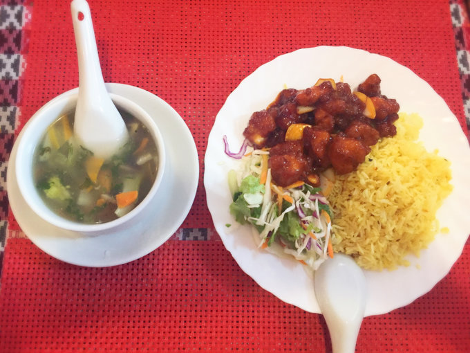 这里还要强烈推荐一家性价比超高的亚洲菜餐厅Himalayan,下图中的食物4.5欧啊,有那么多糖醋里脊!在啃了很多面包后,这顿吃得相当满足!而且小二态度满分!我们本来怕不好吃,两个人点了这一份套餐吃,小二上来两盘鸡肉饭,我们向他示意我们只需一份,他面带笑容表示理解,默默退回去了。结果我们觉得好吃,有点了个虾肉炒面什么的。吃完以后,小二还笑着问我们吃得怎么样