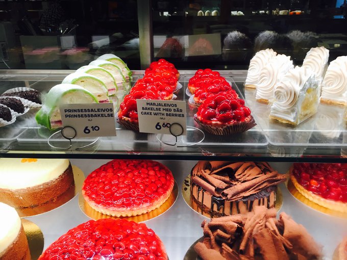 当地连锁品牌Fazer甜点大约6欧一个,各超市有卖Fazer巧克力。
