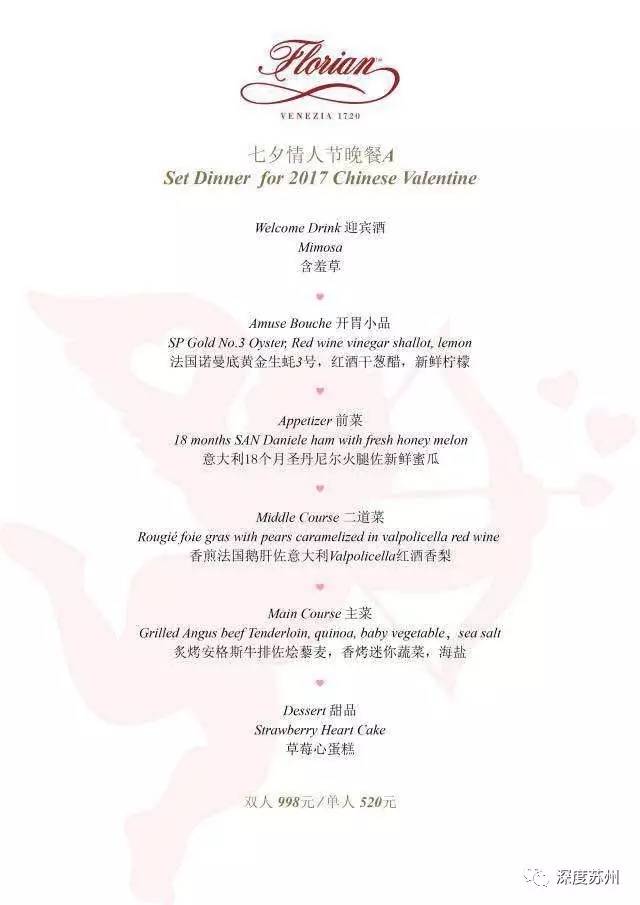 今年的七夕情人节当天, Caffè Florian推出两组七夕双人甜蜜套餐可供挑选,即日起开始预定哦!A餐是为肉食爱好者量身定制的肉食盛宴!意大利18个月圣丹尼尔火腿、安格斯牛排,让你在中满口肉肉中感受浪漫情怀,收获无限惊喜。