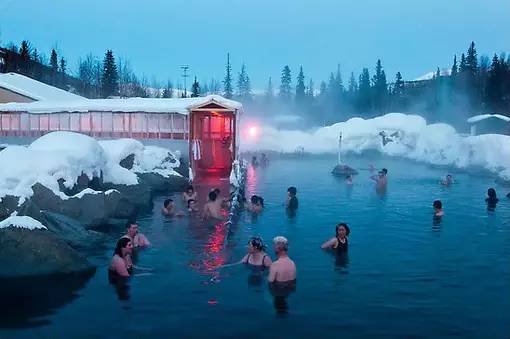 珍娜温泉坐落于美国阿拉斯加州的费尔班克斯,它可是已有百年历史的天然矿物温泉。