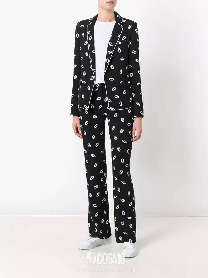通勤造型中选择黑色西服套装真的会给人一种售楼员的感觉哦,有条纹、波点等印花装饰的款式就能很好的缓解这种尴尬。
