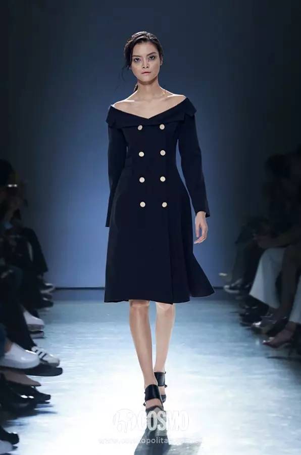 在众多黑色造型中,最让COCO眼前一亮的莫过于这条衬衫裙了。紧身设计包裹出她的曼妙身材曲线,露肩以及胸口、袖口位置的褶皱装饰让这条衬衫裙多了几分设计感,时髦得没边。