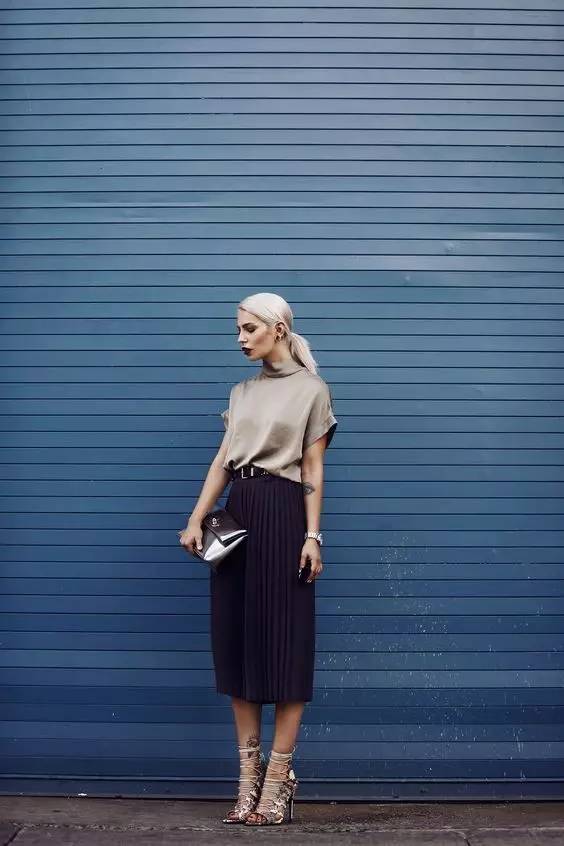 或者选择高腰百褶裙、包臀裙,