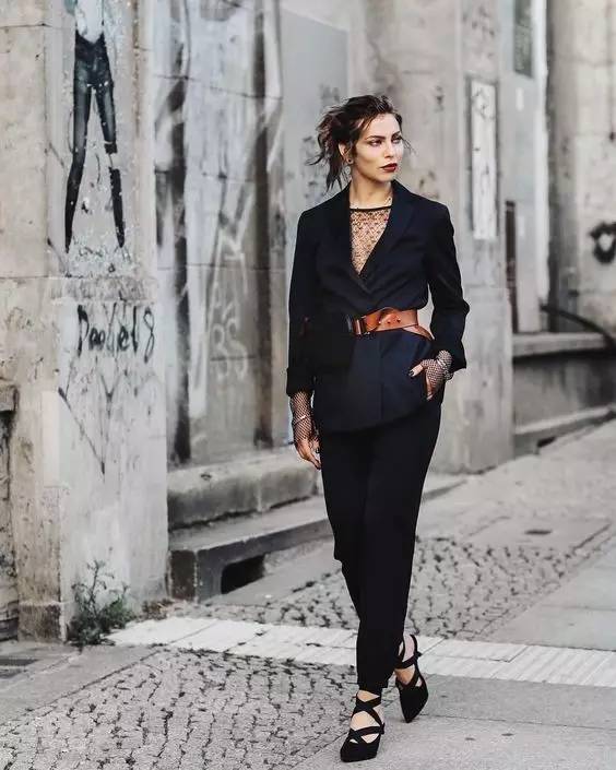 用腰带做加持来突显腰线。