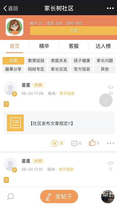 可以看到,已经有不少爸妈加入我们,分享教育经验,孩子健康,家庭关系等各种内容!