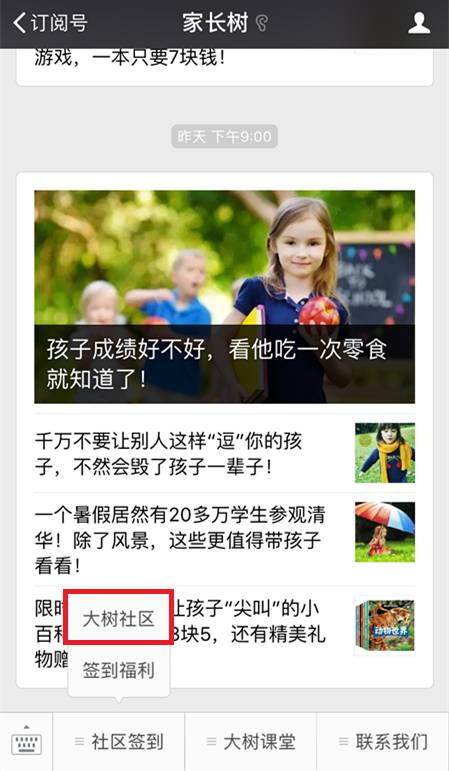 细心的爸爸妈妈们可能已经发现了,家长树的菜单栏新出现了一个“大树社区”!没错,就是这里☟