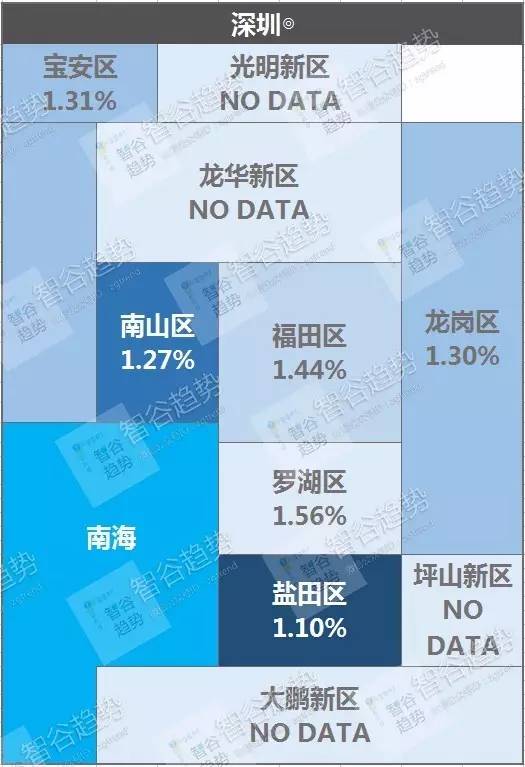 盐田区的低回报率则侧面反映出其作为房产热门区域的一个表现:房价堪比罗湖区,租金却只有宝安区的水平。