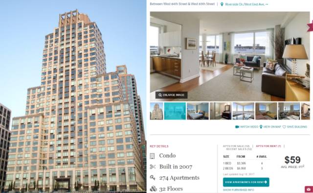 Avery, 100 Riverside Boulevard应该是纽约最著名的高级公寓之一了。一套两房的公寓租金约为5950美元/月(约合人民币4万),房价则是123万美金,租金回报率约为5.8%。