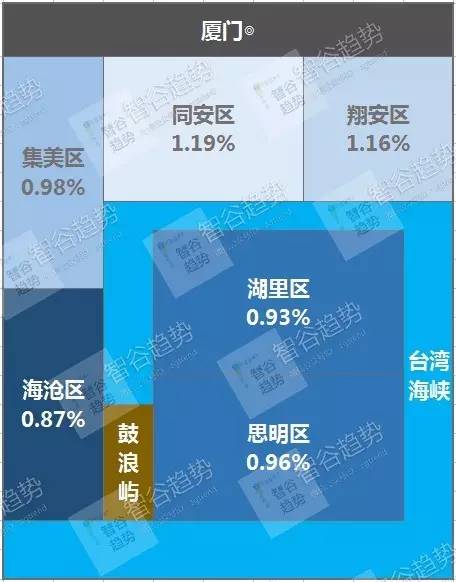 ⑪ 厦门:回报率最低二线城市,租金回报率分布也随意。