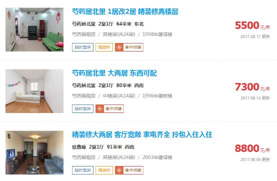 在北京,我们也找了一个不是非常中心但是在五环以内的位置——芍药居北里。租金约为7300元/月,房价则为680万人民币,租金回报率约为1.29%。