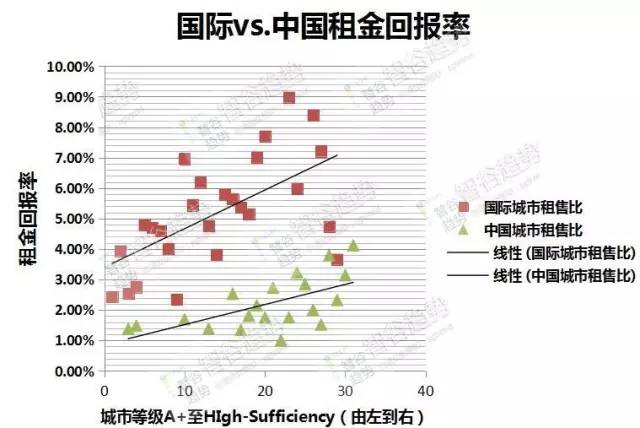 城市越大,租金回报率越低,这是全球通行的规律,只是中国背离得比较厉害。