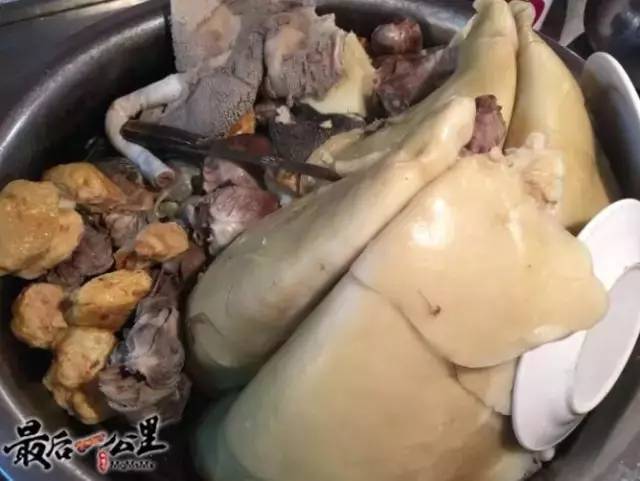 凉拌杂碎。心、肺、气管……麻利地切好,放上黄瓜丝儿、调料、辣油。好多老顾客在这里都变成了好朋友,隔三差五聚在一起,专程吃一份凉拌杂碎。