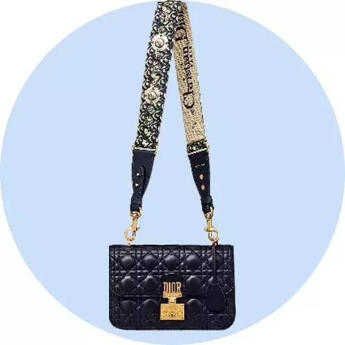DIORADDICT”蓝色藤格纹小羊皮翻盖式手提包