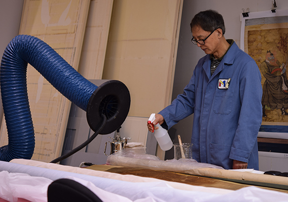 原标题:波士顿美术馆首次在展厅公开修复中国古画:即清洁,又要裱褙