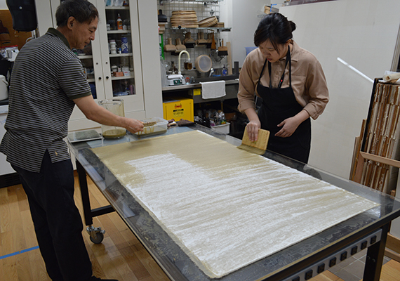 负责这一修复项目的共有四位修复师——主修复师高竸,两位助理修复师:蔡欣辰、吕智超,以及访问见习修复师陈颖慧。他们统一身穿印有波士顿美术馆logo的黑色polo衫,三位来自中国,一位来自新加坡。
