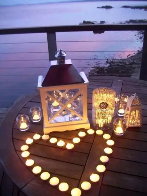 把阳台收拾收拾,打造一个你们的小小的新天地,香薰烛光与灯光交映,这就是恋人们需要的氛围呀!(红酒啊什么酒的都可以上来了!)