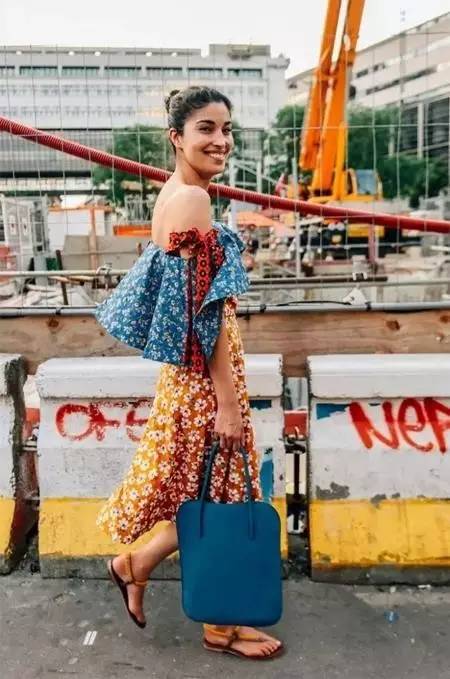 比如现在满大街的围裹一片式长裙就是开衩露腿最简单的秀腿神器~每走一步,后面都是满天飞的浪漫风情~▼