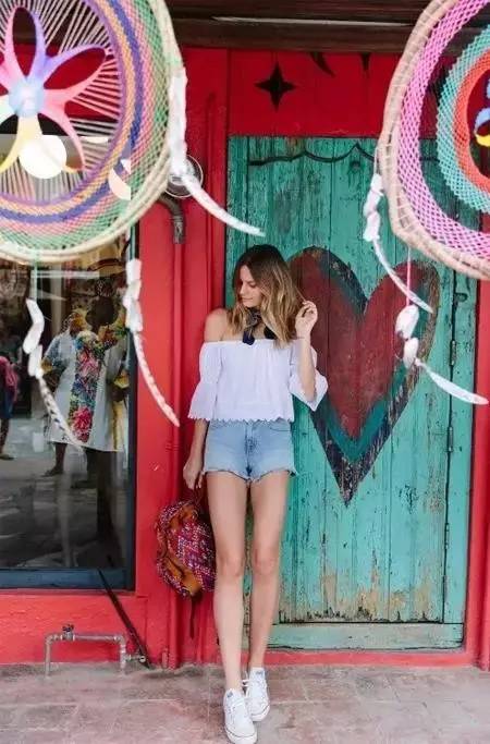 夏天这个露肤的好季节,在办公室可能不适合的露肩装和牛仔热裤,在度假的时候当然要玩起来啦~▼