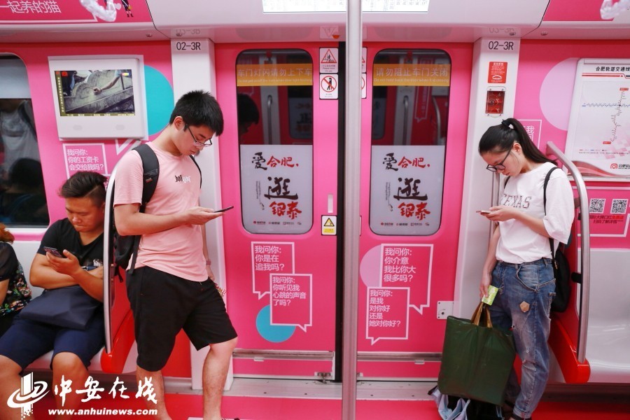合肥地铁1号线的“爱情专列”车厢