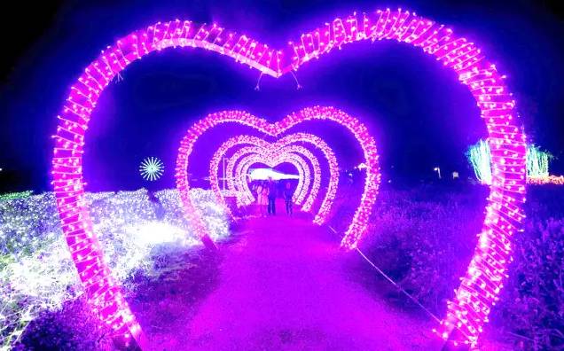 爱心隧道,繁星点点,露着微光,我微笑着,和你感受月下浪漫。