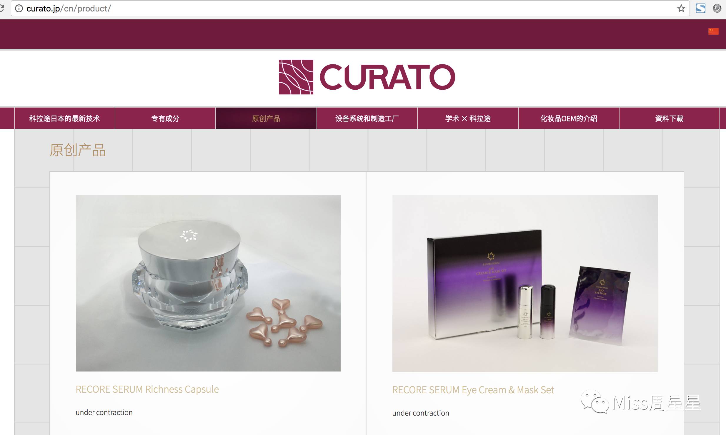 从网址上可以看出Recore Serum属于Curato公司,然后在微博搜索关键词「Curato」,结果发现了这个头像很日式的微博;