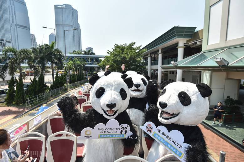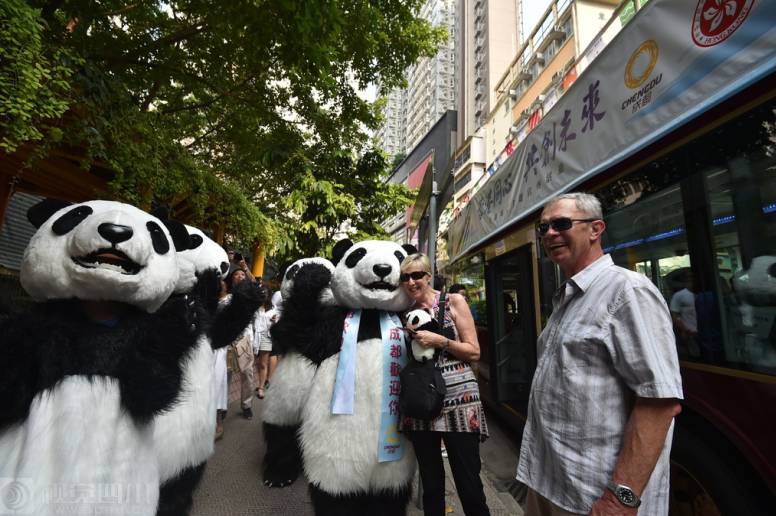 满载大熊猫人偶的“熊猫BUS”每天穿梭香港街头,所到之处,皆为焦点;香港中环天星码头,年轻人喜欢的音乐、舞蹈、太极等“快闪”,让活动的时尚指数蹭蹭上窜;香港海洋公园,一大批憨态可掬的大熊猫“私家照”、大熊猫人偶表演,大熊猫DIY彩绘等让游客流连。第一次参加“快闪”活动,香港太极功夫大师郑冠球感觉很奇妙,“这是一种文化的碰撞,既传统又现代,极具创意。”