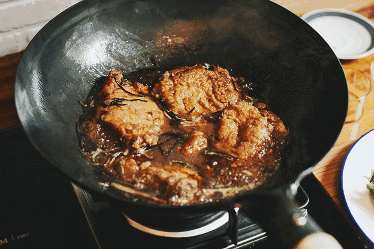 翻面再来10秒,翻的时候小心一点,不要把肉排拎起来,贴着锅底翻,这样不容易溅油。
