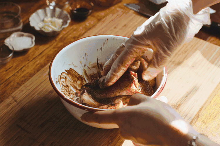 用白胡椒粉、半勺老抽、一小勺盐、料酒抓匀腌制十五分钟。抓的时候小心一点,骨头很容易划伤手。 盐不要多,后面还有酱油呢。