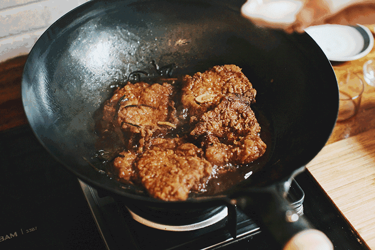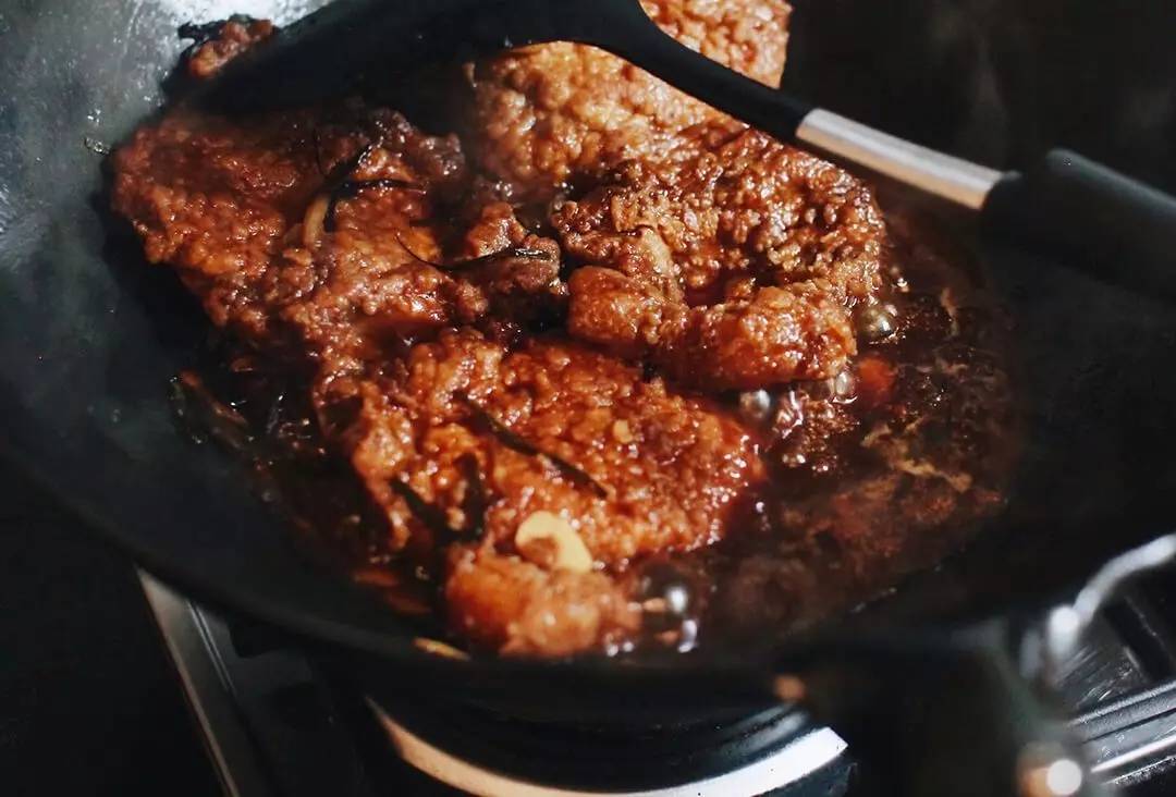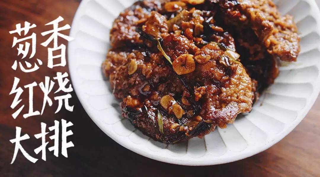 油光蹭亮的红烧大排就做好了,这道菜最美好的地方在于,就连里面的葱姜蒜等配料都很好吃,特别是炸酥的小葱,吸收了汤汁和肉香,超下饭。