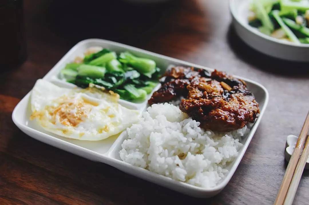 不过最重要的还是餐具,要用打饭盘装,还要淋一勺汤汁在米饭上味道才正!