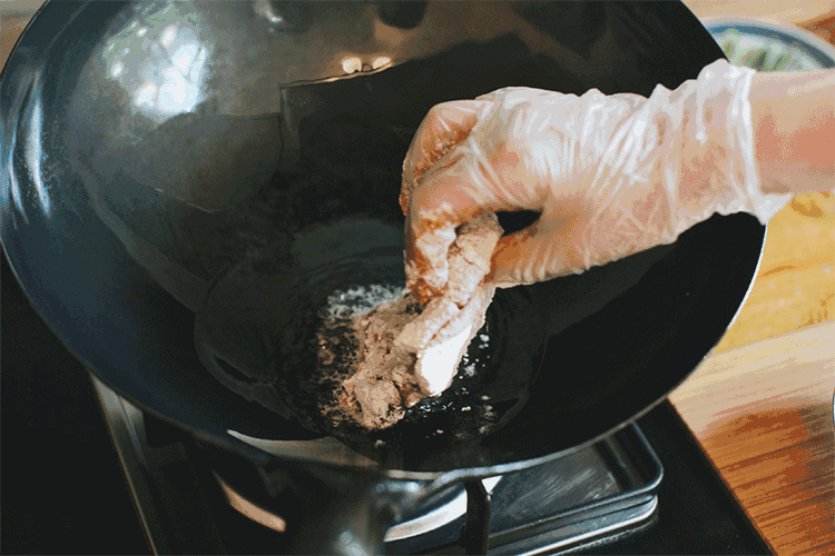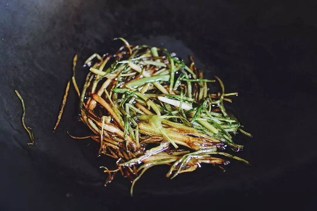 原来的底油不要用了,倒掉之后将锅简单清洗一下。依然是小火,2勺油,烧热后下小葱炸香,记得把小葱上的水份先晾干哦。