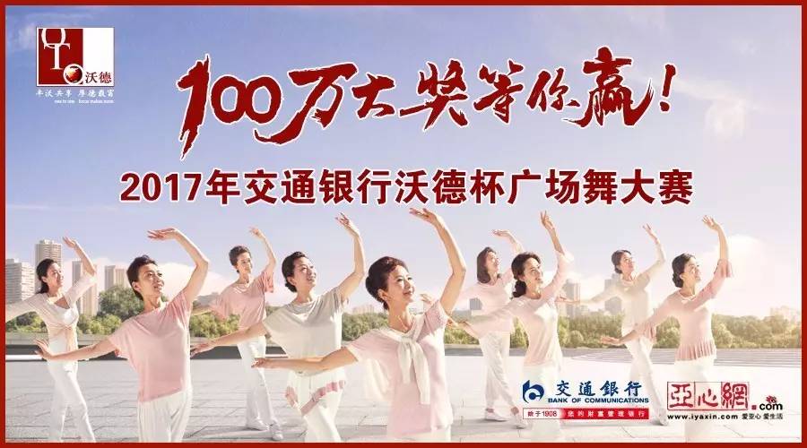 据了解,“最红心齐舞”—2017年交通银行"沃德杯"广场舞大赛于7月至9月,在全国37家省直分行采用“线下比赛+线上评选”的形式分别在37个赛区举行海选赛,,各分赛区将推选分区冠军入围全国复赛37强。10月,通过全国线上投票和评分委员会评分,11月,在37支复赛队伍中排名靠前的12支队伍进入全国总决赛。凡入全国总决赛12强的舞队均有10万元现金奖励,全国总冠军奖金100万元现金,亚军奖金50万元、季军奖金30万元。不仅如此,交通银行新疆分行还拿出4.5万元专款作为新疆区决赛奖励,新疆区冠军将有万元奖励。