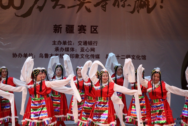 身姿摇曳、眼神流转、动感的音乐、欢快的节拍……当一支支舞曲奏响,8月27日,“最红心齐舞”—2017年交通银行"沃德杯"广场舞大赛新疆赛区第三场海选赛在新疆生产建设兵团第十二师文化馆拉开帷幕,来自乌鲁木齐、昌吉等地的28支队伍用快乐的舞姿展示健康、幸福美好的生活。