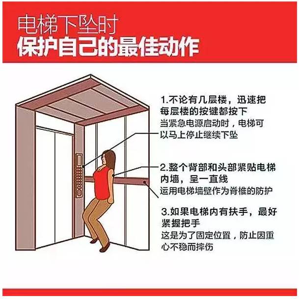 即使遇到电梯异常下降的情况,大伙儿也不必过于惊慌,按照下图来做就好。