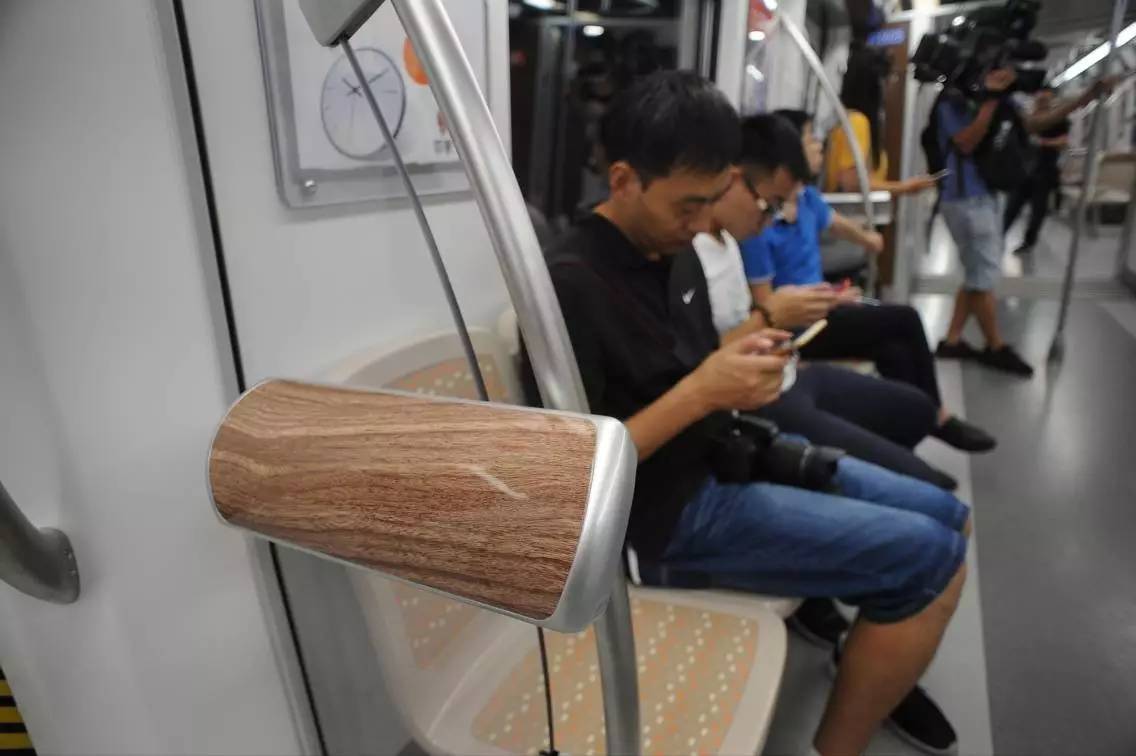 10号线车厢里处处都有贴心的扶手设计。