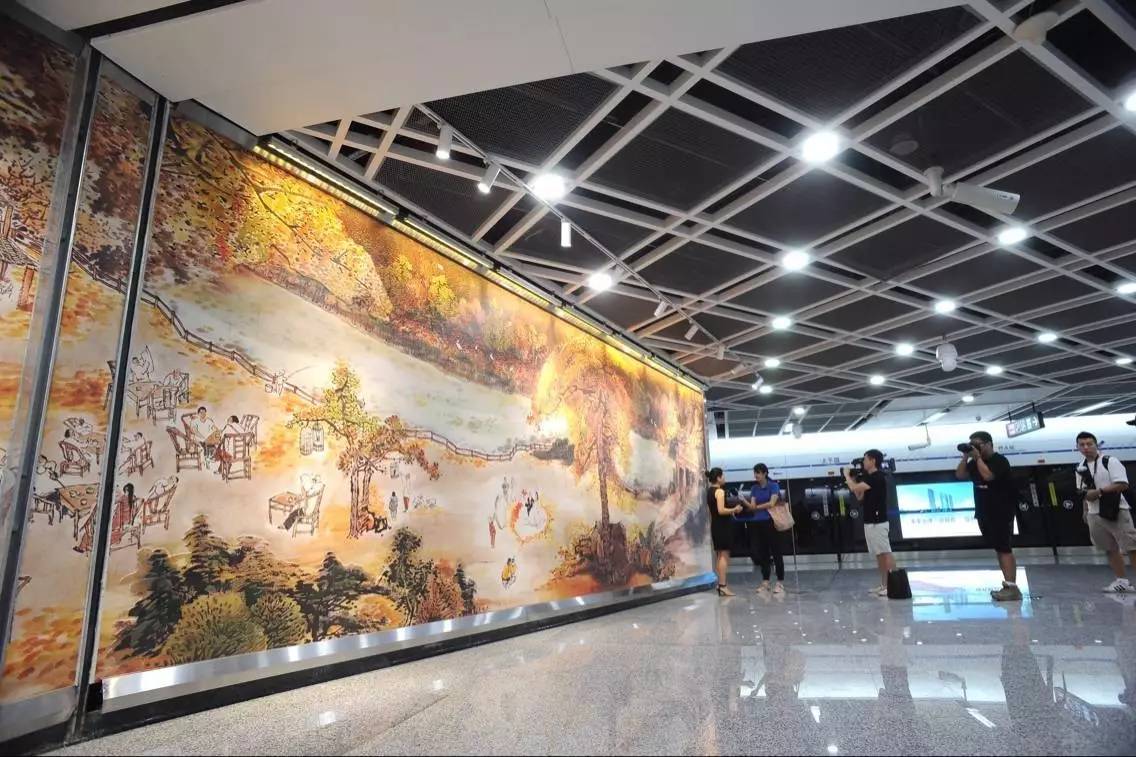 太平园站有两幅文化墙,主题为“金色成都”,以金色银杏为主,辅以“鸟”元素进行创作。
