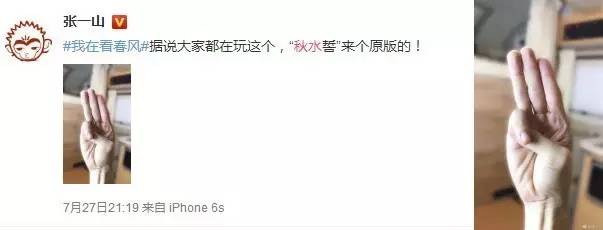 原来,人家的姿势是“右手小指压在大拇指上面,其他三个手指保持竖直”,这个传说98%的人都做不到的手势,很快被网友玩出了花,“秋水誓”battle瞬间占据微博及朋友圈。话说,你可以做到吗?
