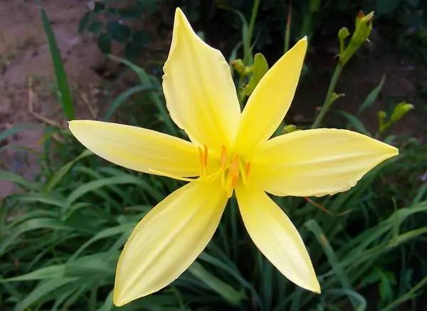 黄色的萱草就更跟黄花菜分不清了,比如下图: