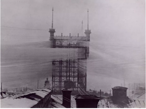 如果你看到 100 年前的电话通信基站,你会深刻感谢无线电技术的。它宛如一座高耸的大面条厂子,向四面八方源源不断地输送面条。