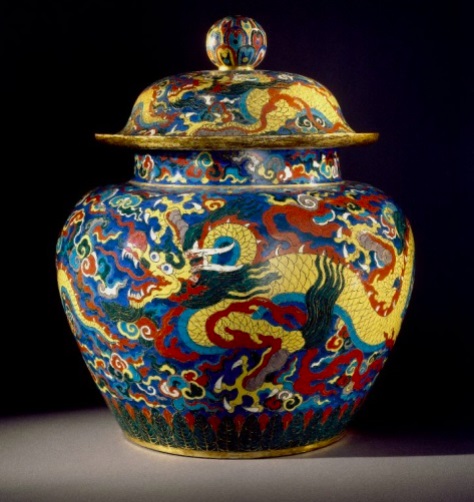 明朝景泰皇帝7年的政治生涯中唯一留下名垂青史的艺术品就是景泰蓝。但是许多“景泰年制”款的珐琅器是由元代或明初的旧器拼配、补配、改款、加款后重新制作而成。到了晚明江南富庶,人们追求美物。此时的景泰蓝梅开二度。景泰蓝数量增加,质量下降,式样有所创新。