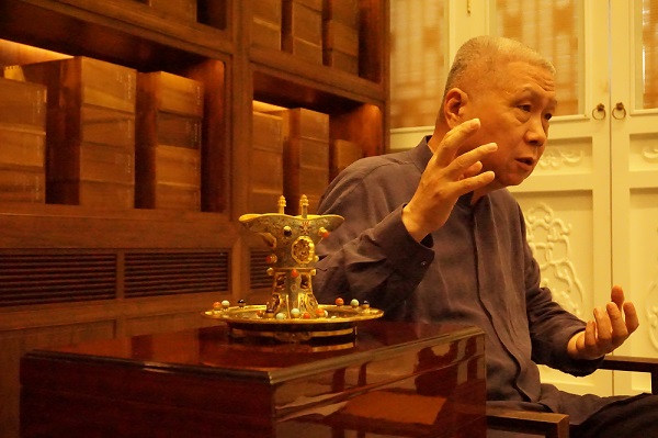 “乾隆四十四年的除夕,跨越零点,乾隆就七十岁了。他举办盛大的家宴,当时有四百人不止,但是只有乾隆皇帝的桌子上能用全套的景泰蓝器具,足见景泰蓝规格之高。我们造景泰蓝爵杯,就是希望当今有人能拥有它, 我对瓷器、玉器,竹木牙角、景泰蓝都熟,是因为我买过很多,拥有了以后就会加深对它的认知。”马未都说。
