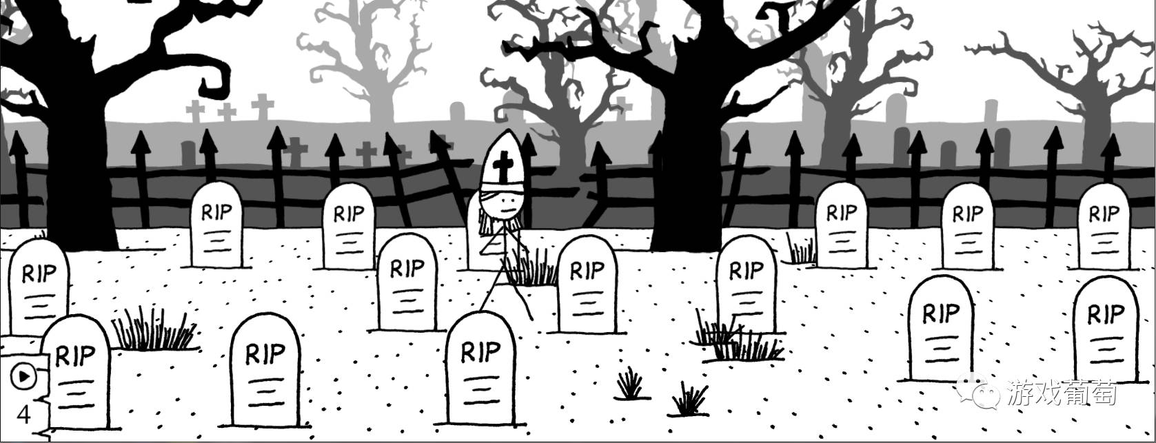 但如果看到这里,你认为这款游戏仅仅是一个带有回合制战斗的剧情游戏,那可就错了。葡萄君也曾这么以为,直到在一个墓地遇到了一位有30多个女儿孙女的老奶奶鬼魂。她手捧着一株鲜花苦恼地站在一堆墓碑前,告诉葡萄君她忘记了自己最爱的孙女的名字,仅能提供了一些线索以供推测。突然间,这游戏“啪”地一下变成了一个推理游戏,你要通过线索在30多个墓碑中找到她最爱的孙女的名字。