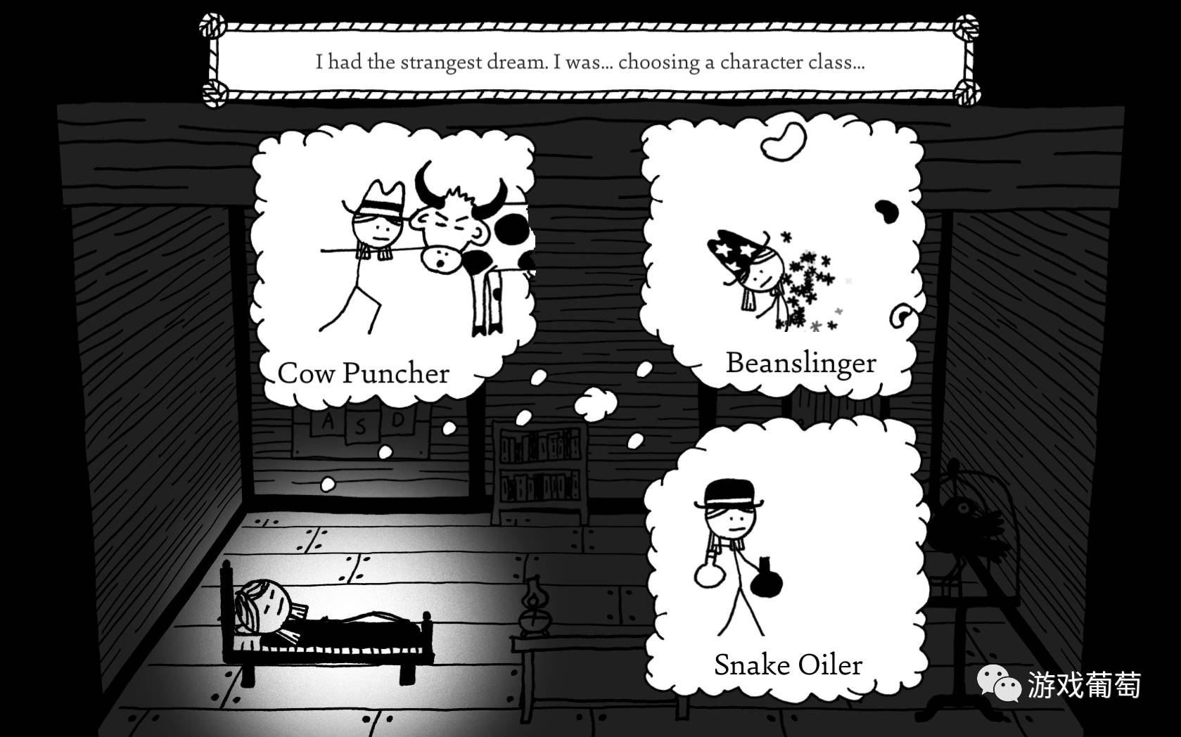 游戏里有3个初始职业供玩家选择,不同的职业会对玩家的三个初始能力和之后的生活技能有所影响,夯牛人(Cow Puncher)主要使用力量并能制作皮革,投豆人(Beanslinger)则对应魔法和烹饪,蛇油师(snake oiler)使用枪并可以从蛇身上提取药剂作战。