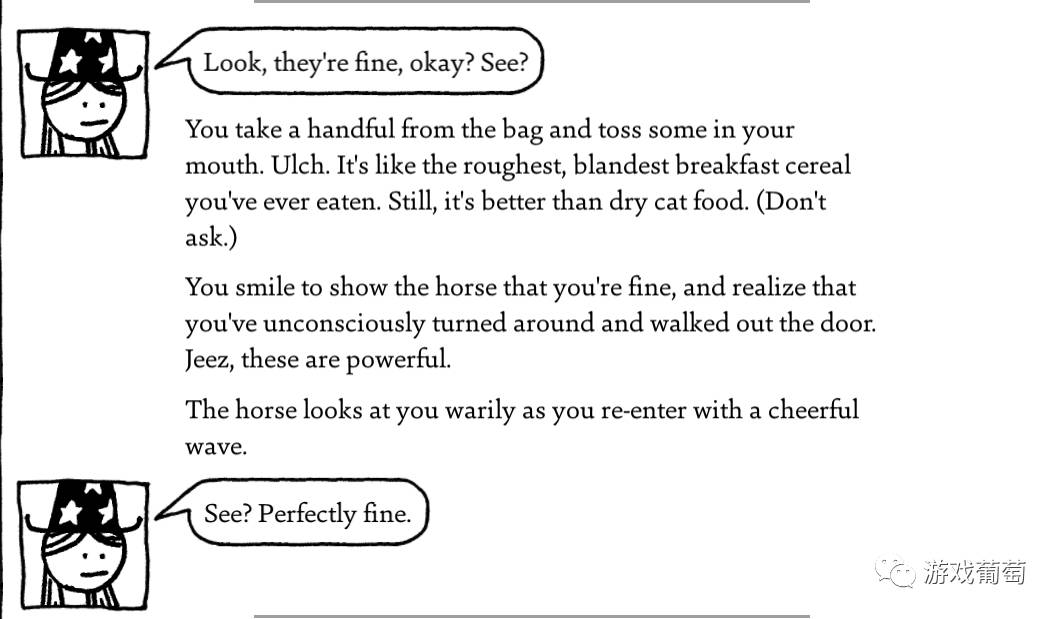 再如,有个任务需要玩家用马棚老板给的草料去哄他的马回家,于是发生了如下的情形: