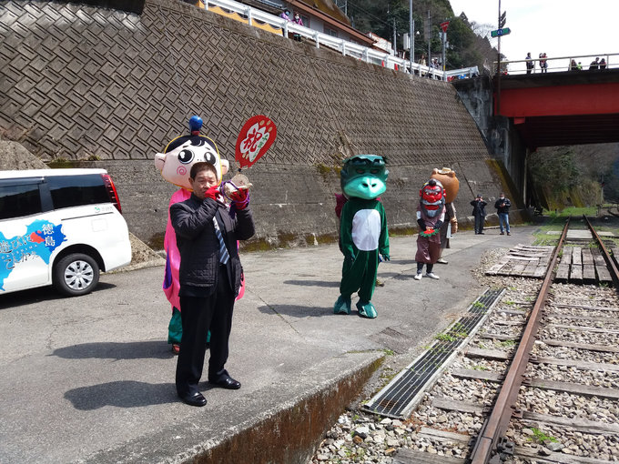 妖怪站长带头列队欢迎新开观光列车