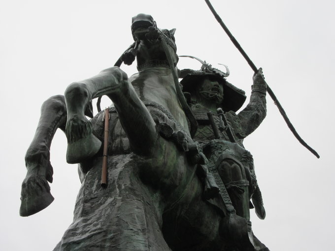 此次四国之旅最直接的原因和日本历史传奇英雄坂本龙马(1836-1867)有关,四国土佐(今高知县)出身的龙马在1867年不幸遭遇暗杀,到2017年刚好是龙马去世150周年,在如此特别之年踏上龙马的故乡当然是最好的纪念。我在古称阿波的德岛县开始自己的初次四国之旅,虽不能立刻进入龙马行程,却也真有一处最适合当做旅途起点的地方,这就是位于德岛县小松岛市的旗山。旗山一带是平安时代末期源氏名将源义经(1159-1189)在征讨朝敌平氏时最初登陆四国的地方,此前由义经率领的源氏军团曾在一之谷(今兵库县神户市)利用奇袭大破平氏,之后将战场推进到四国地区,在屋岛(今香川县高松市)再次利用奇袭进一步将平氏击退。相传义经从阿波登陆四国之际曾在一座小山上插起源氏的白色军旗(平氏为红旗),“旗山”由此得名,如今为纪念义经在四国的丰功伟绩,后人在旗山上立起一座义经骑马像。我利用铁路来到南小松岛车站,这里距离旗山大概2公里,为节约时间我决定乘坐出租车。路上跟出租司机聊天,老师傅指着车窗外连绵群山的尽头告诉我其实那里才是义经最初登陆四国的地方,如今这一带的很多街道、田地在古时基本还是大海,当时义经登陆后沿着连山一路走到现在的旗山,然后才有义经插旗的故事。另外老师傅还很诧异居然会有外国人大老远跑到这里看义经铜像,猜我是源氏迷,问我是不是很讨厌平氏。我回答自己并不讨厌平氏,要说喜欢的话,最喜欢的当然还是同时代在日本东北大力发展文化的奥州藤原氏。
