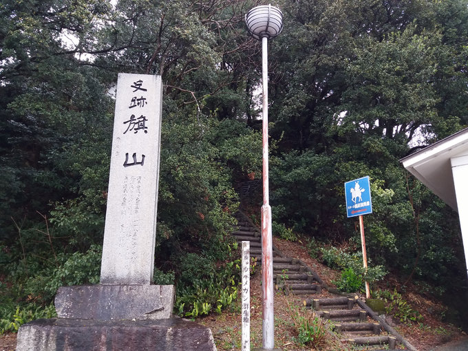 旗山下,右侧那个蓝色的小牌子是当地的义经巡礼路线指示牌