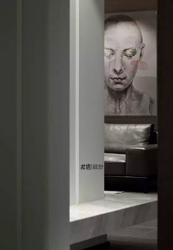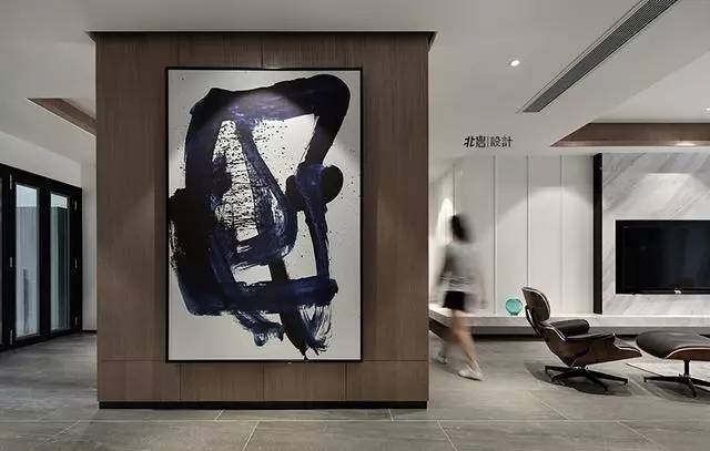 挂画的选择很是用心,客厅人像装饰画形成了空间的主题,墙面大面积留白,以另一种方式表现现代东方美学,与门厅巨幅抽象画形成呼应,在一大一小的对视之间形成一种有意思的张力,相互搭配,赋予空间以人文艺术内涵,洗涤心灵,回归沉静。